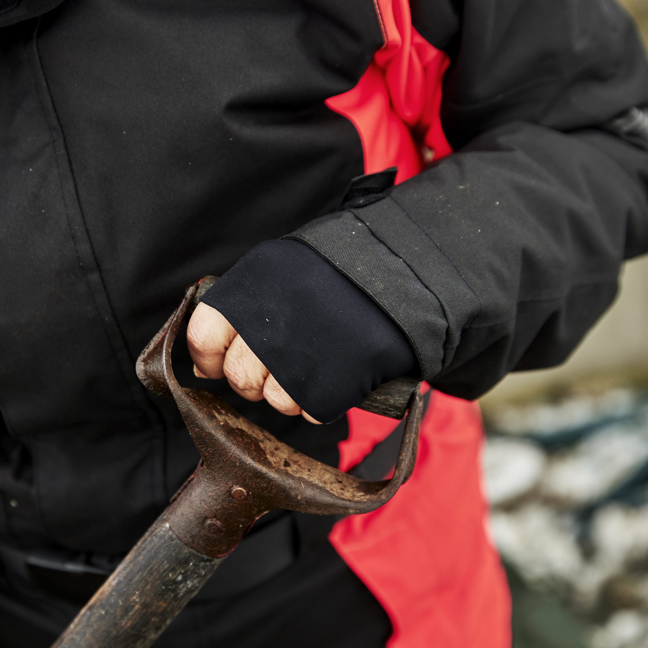 - Justerbare ærmer med gribebånd, håndbeskyttelse og indvendig vindfang med tommelfingerhul