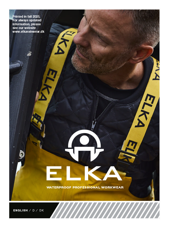 I hovedkataloget finder du et bredt udvalg af ELKAs professionelle regntøj, arbejdstøj og sikkerhedsbeklædning.